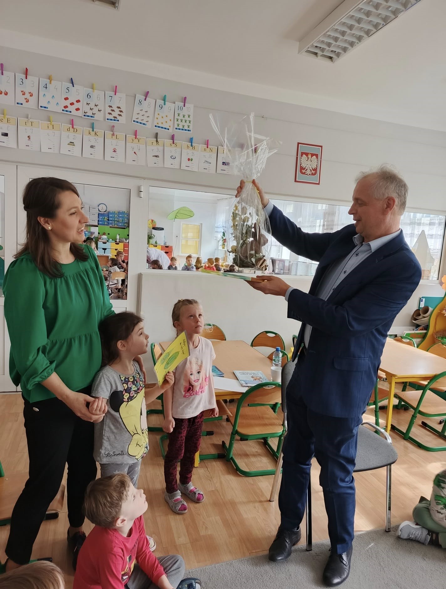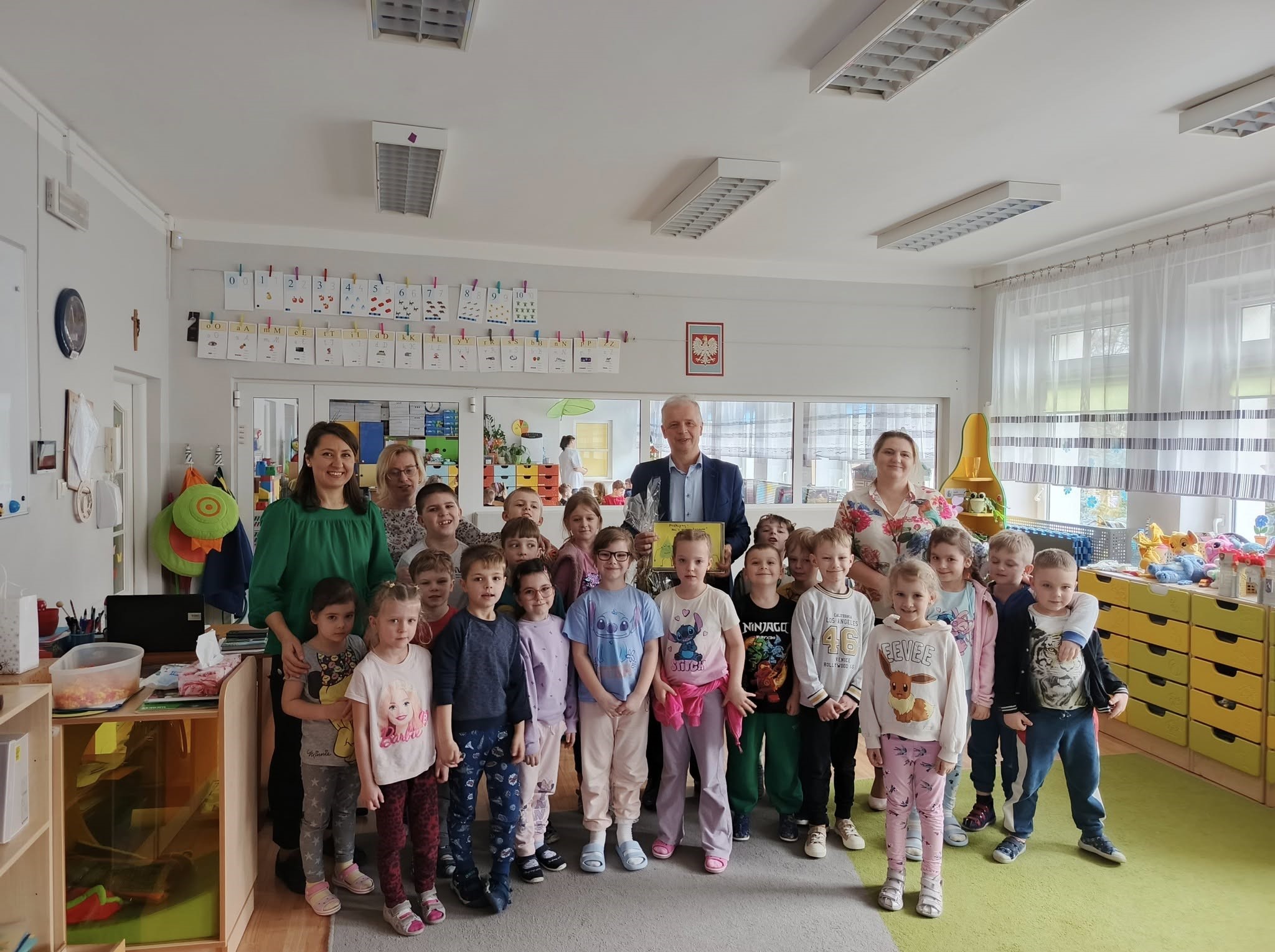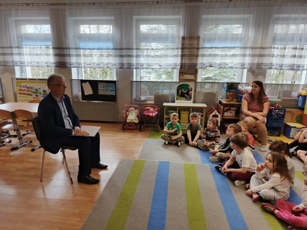 Pan Jarosław Grenda, Prezes PWiK sp. z o.o. w Mińsku Mazowieckim opowiedział dzieciom o tym, czym zajmują się pracownicy przedsiębiorstwa, a także przeczytał opowieść detektywistyczną o poszukiwaniu wody.
