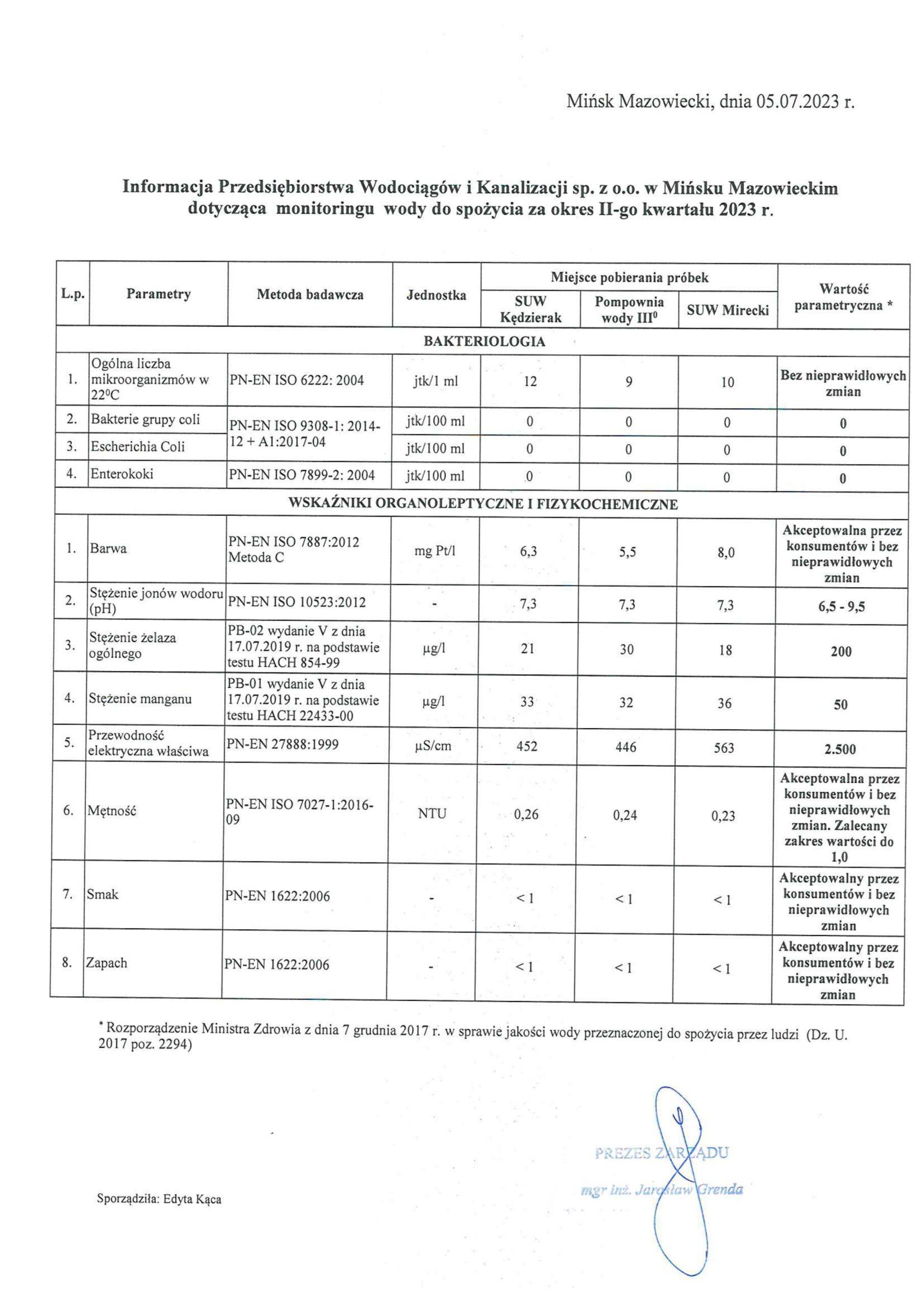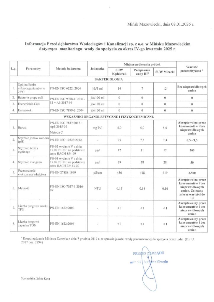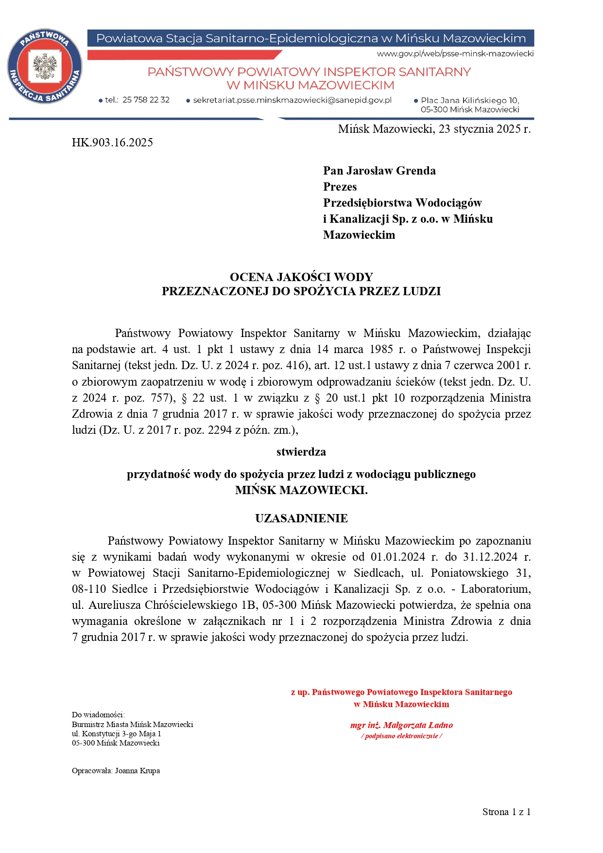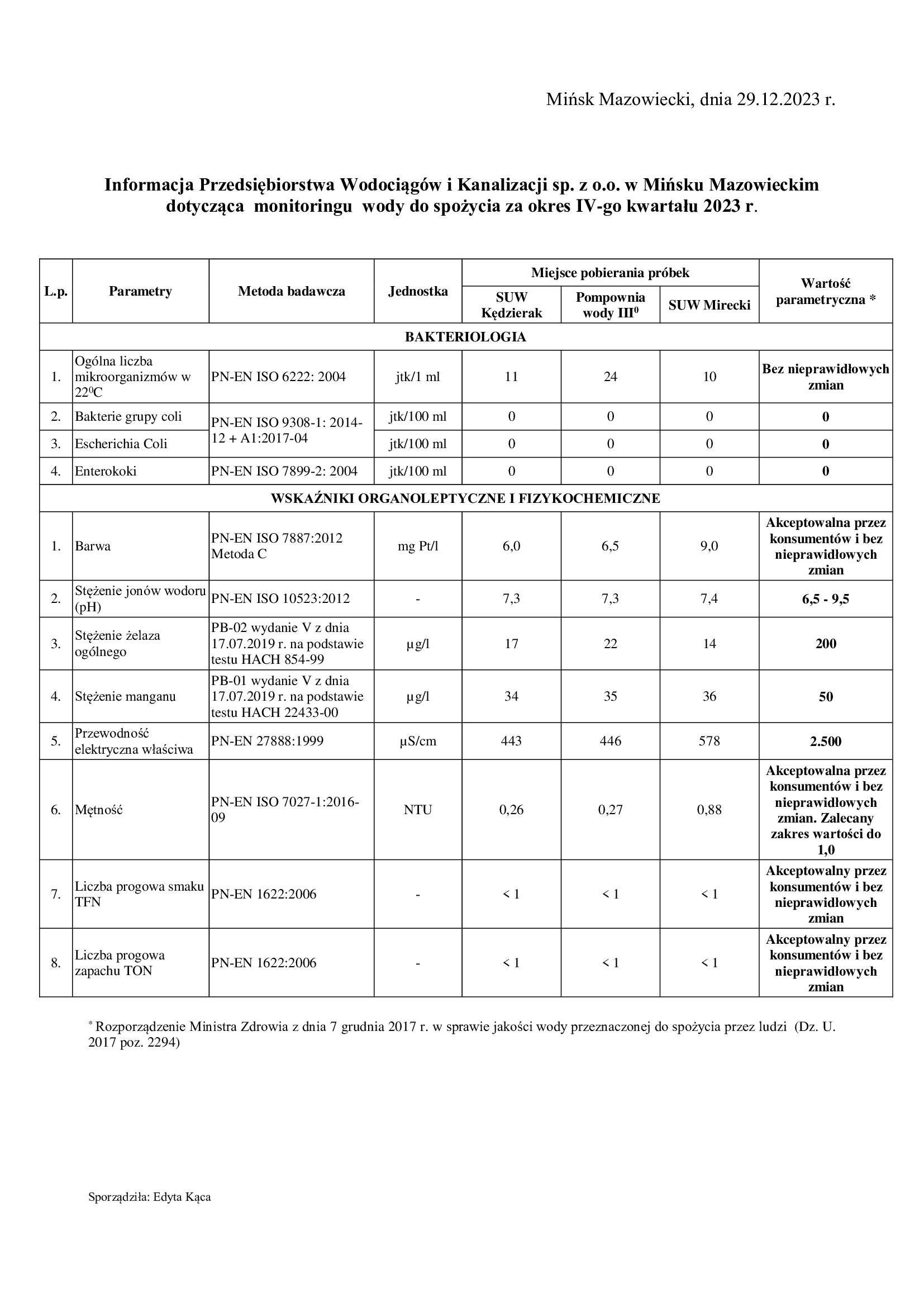 Ocena jakości wody przeznaczonej do spożycia przez ludzi.