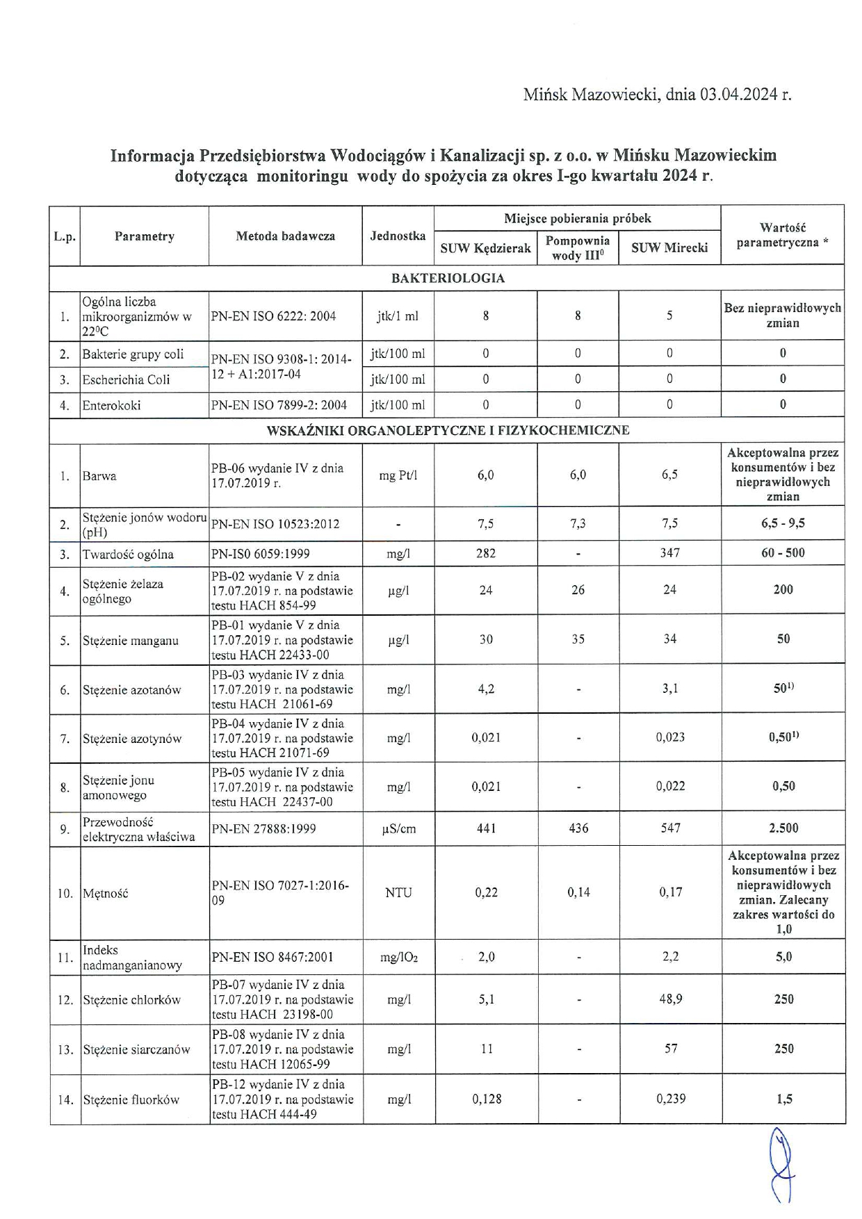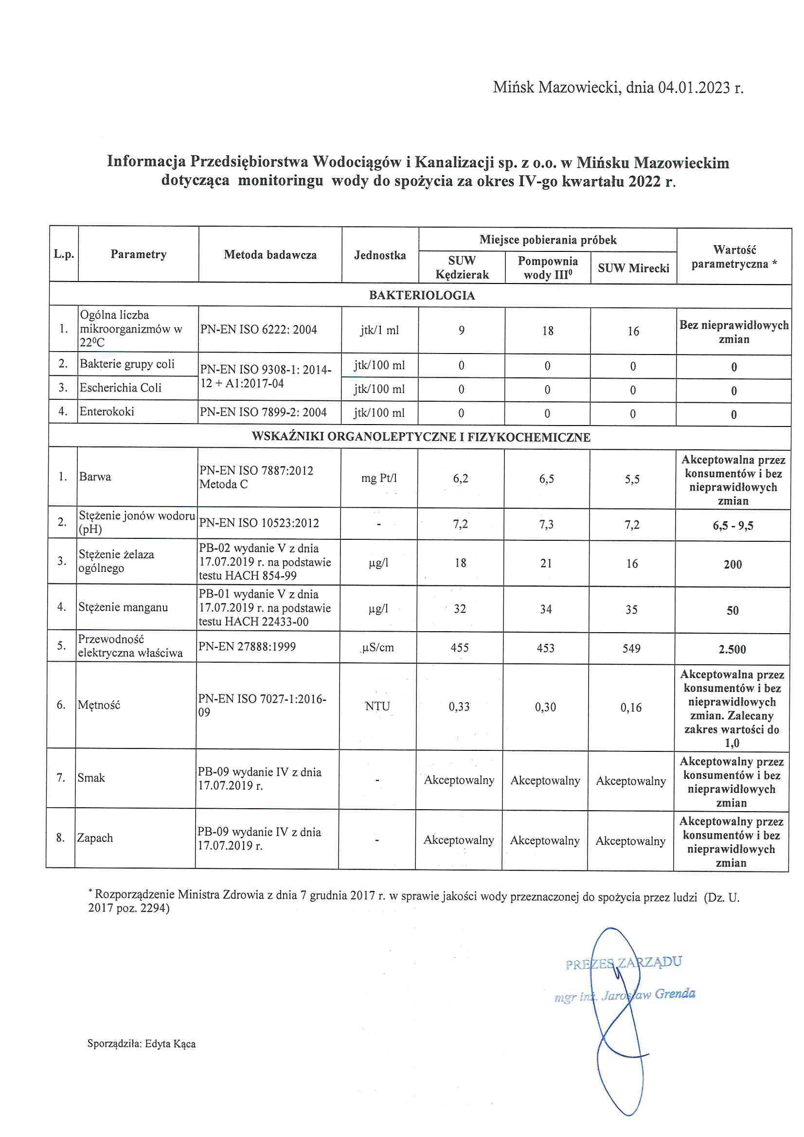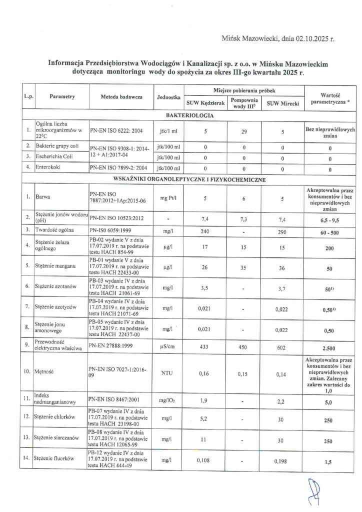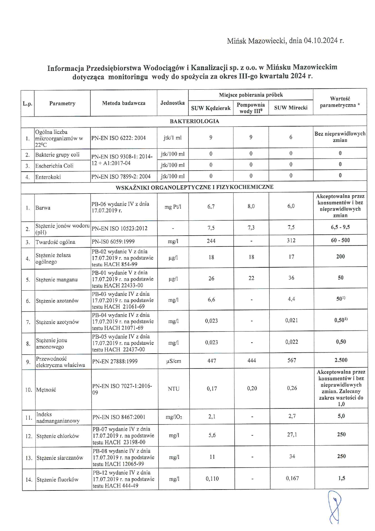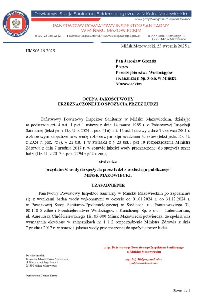Ocena jakości wody przeznaczonej do spożycia przez ludzi.