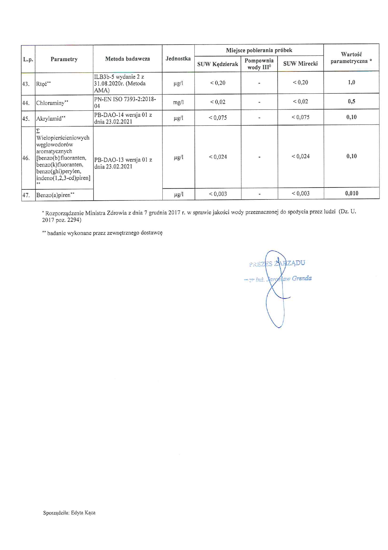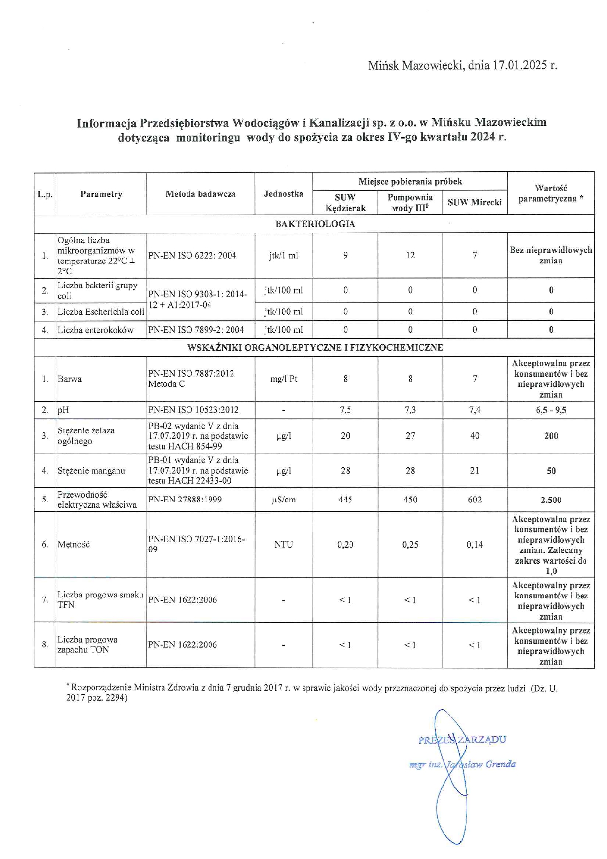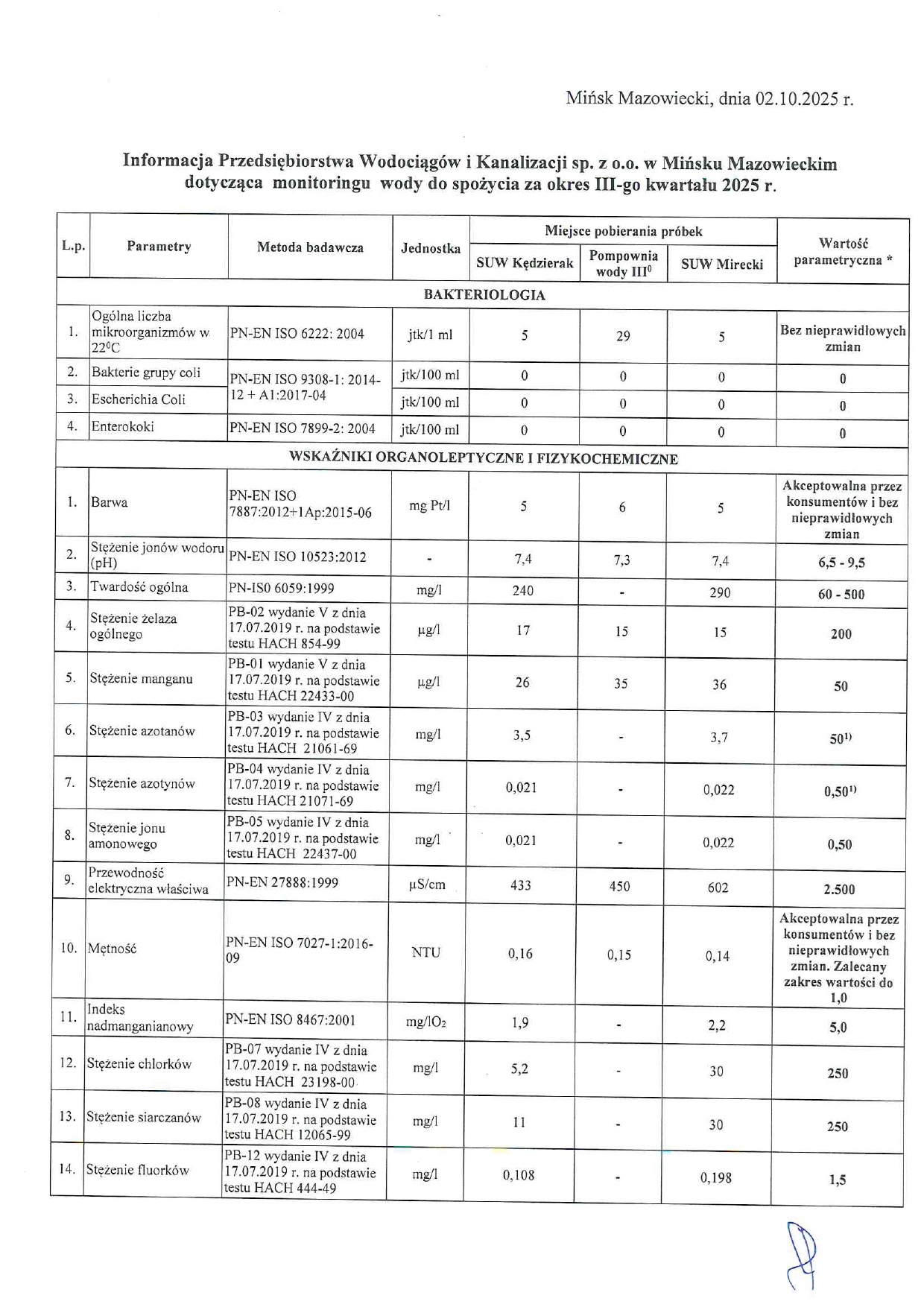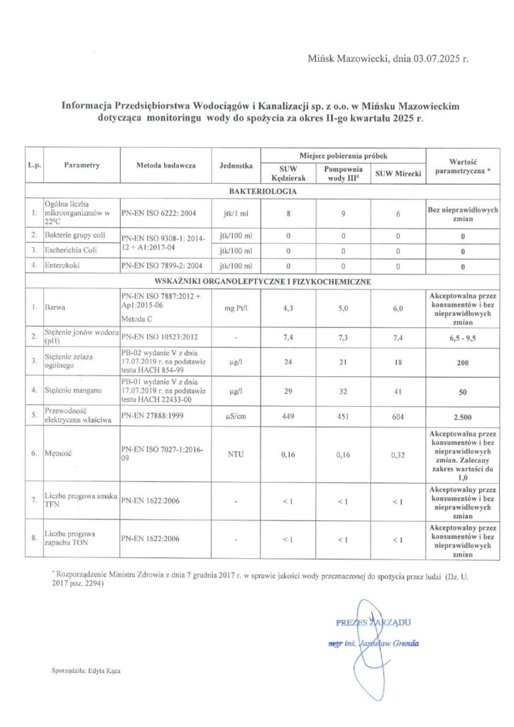 Ocena jakości wody przeznaczonej do spożycia przez ludzi.
