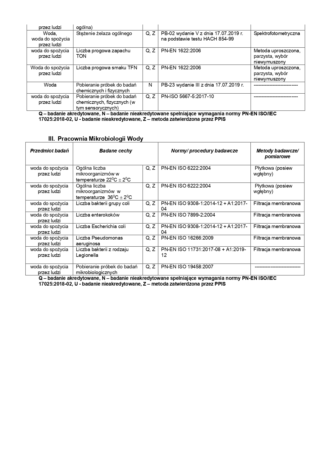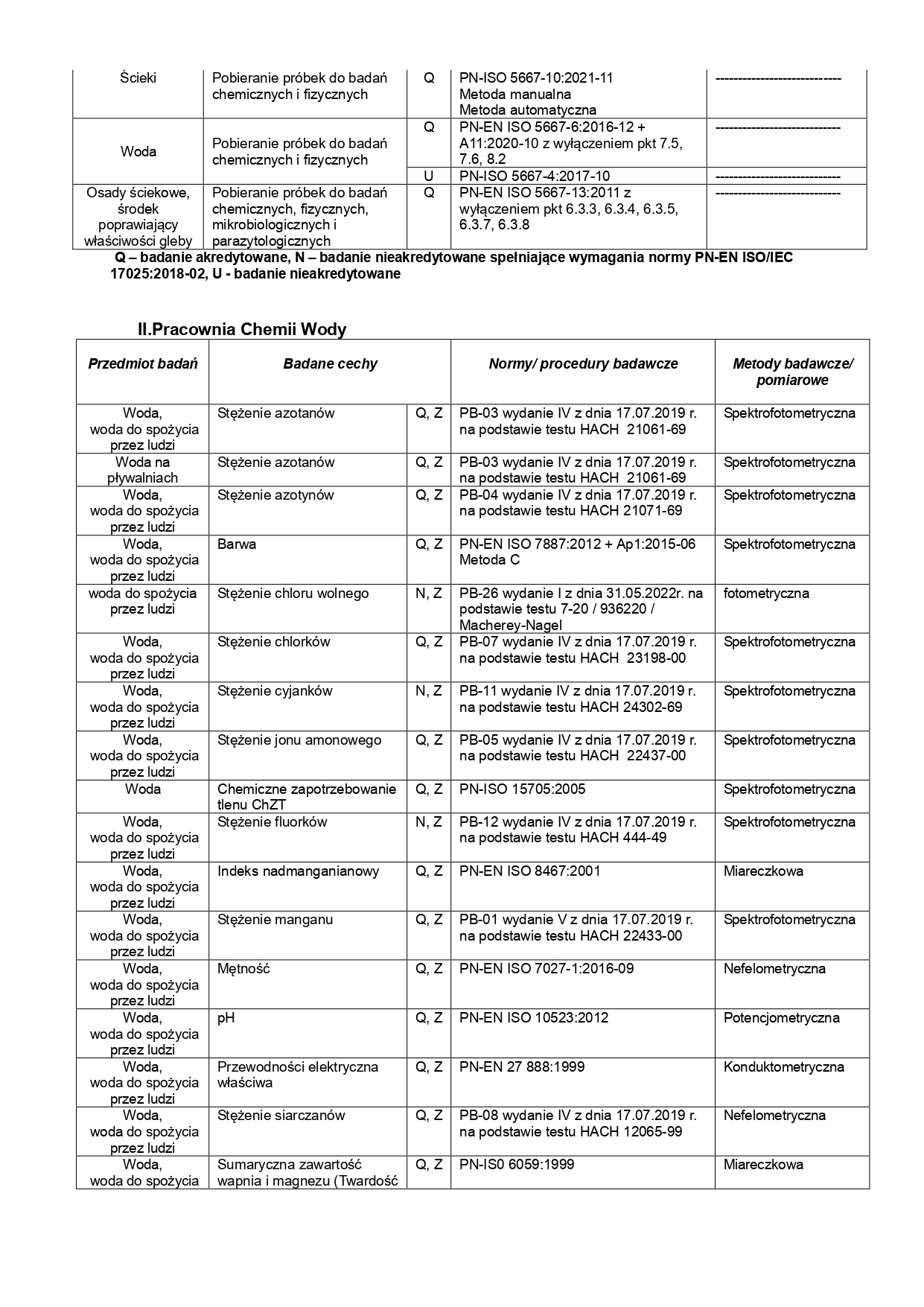Gwarancją spełnienia powyższych zobowiązań jest wdrożony przez nas system zarządzania według normy PN-EN ISO/IEC 17025:2018-02 – Ogólne wymagania dotyczące kompetencji laboratoriów badawczych i wzorcujących. Potwierdzeniem spełnienia wymagań w/w normy jest przyznany przez Polskie Centrum Akredytacji certyfikat nr AB 1189, który stanowi prestiżowe wyróżnienie i świadczy o bardzo wysokim standardzie wykonywanych przez nas badań. Kompetencje, poziom standardów pracy i procedur stosowanych w naszym Laboratorium są co roku nadzorowane przez wykwalifikowany zespół audytorów Polskiego Centrum Akredytacji. Podobnie jak wdrożony system jakości w zakresie badań wody do spożycia, który jest co roku zatwierdzany przez Państwowego Powiatowego Inspektora Sanitarnego w Mińsku Mazowieckim, uprawniając tym samym nasze Laboratorium do wykonywania badań wody przeznaczonej do spożycia przez ludzi zgodnie z Rozporządzeniem Ministra Zdrowia z dnia 7 grudnia 2017r. w sprawie jakości wody przeznaczonej do spożycia przez ludzi (Dz. U. 2017 poz. 2294).